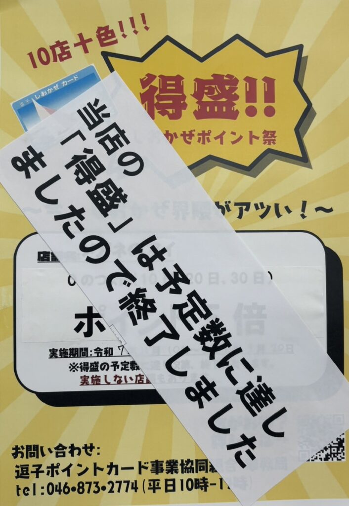 ご好評いただきました「得盛!!しおかぜポイント祭り」